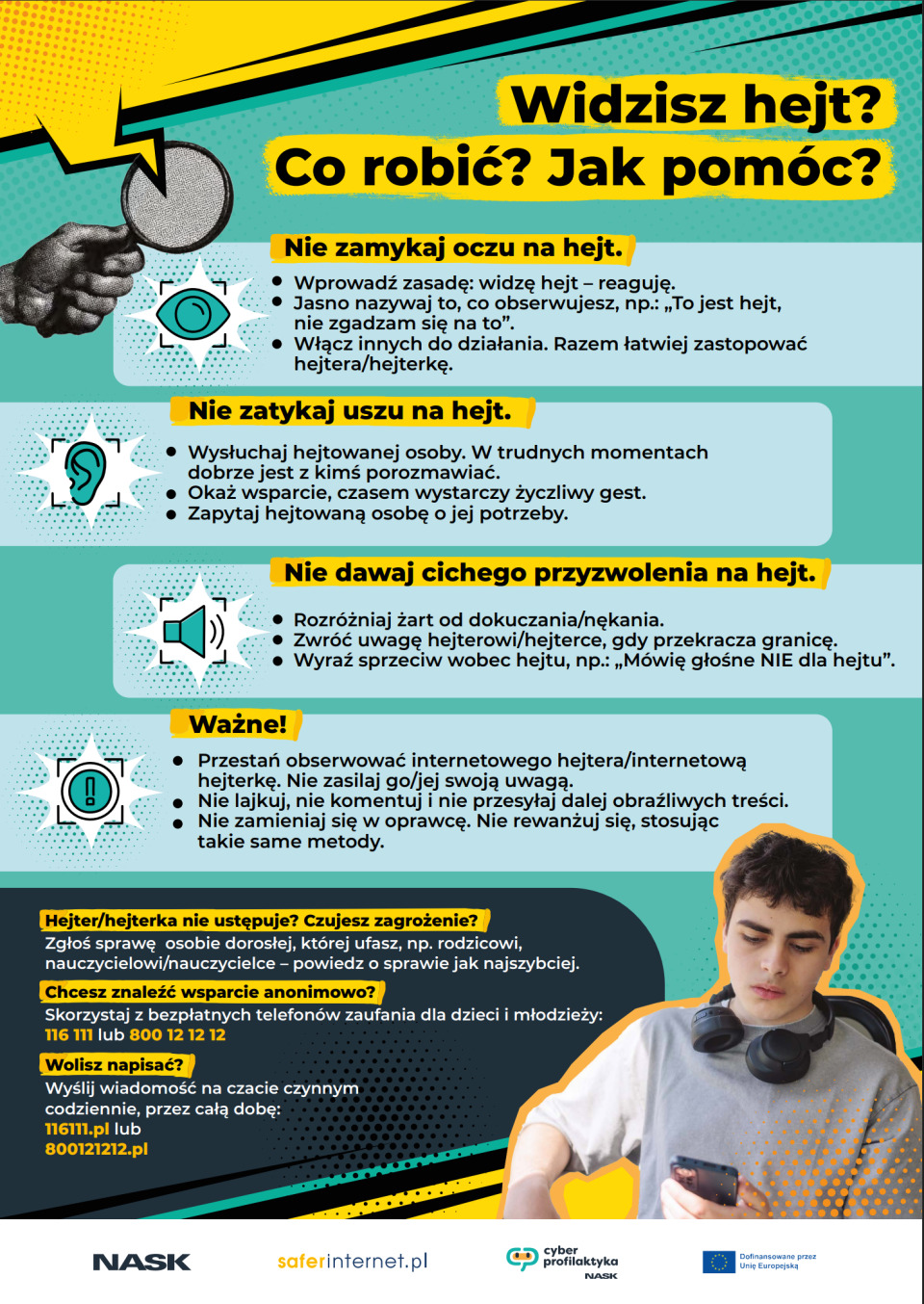2 października obchodzimy Międzynarodowy Dzień bez Przemocy uchwalony przez Zgromadzenie Ogólne ONZ 15 czerwca 2007 roku. W tym szczególnym dniu chcemy przypomnieć, że każdy z nas może być wsparciem dla osoby doznającej przemocy. Jeżeli jesteś świadkiem stosowania przemocy, nie bądź obojętny na cudzą krzywdę.